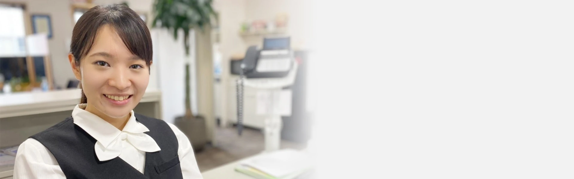 言葉使いが丁寧で、電話取らせたら事務所イチ!いつもニコニコ、ハキハキしていて頼りになる子です!