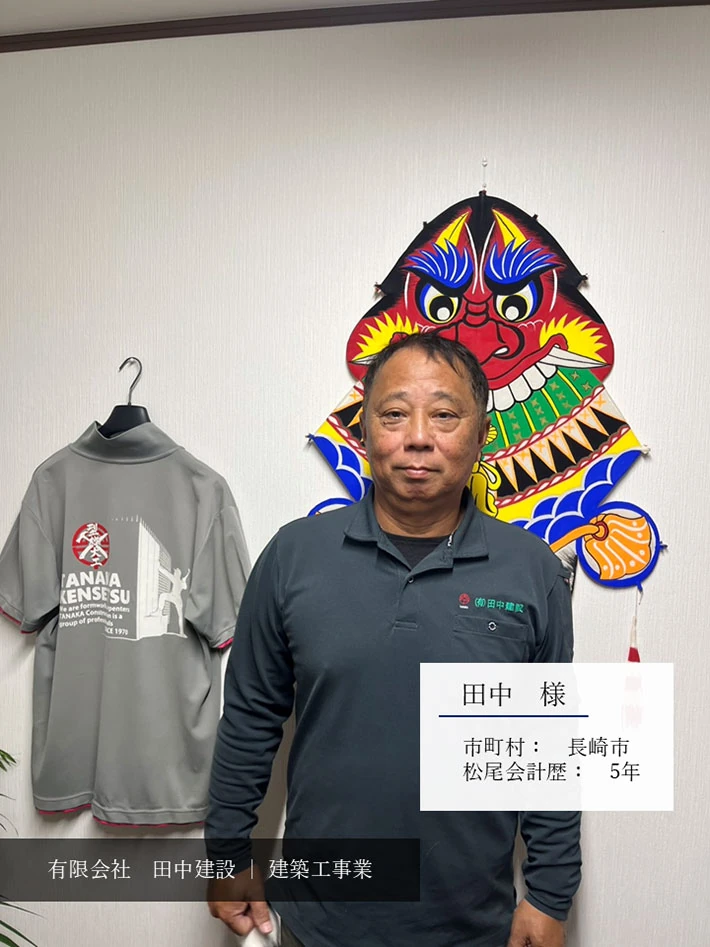 長崎市でTKCの会計システムを導入されていて、かつ建設業に強い事務所がいいと思っていたところ、松尾会計事務所さんが目にとまり、「ここにお願いしてみよう」と思ったのがきっかけです。